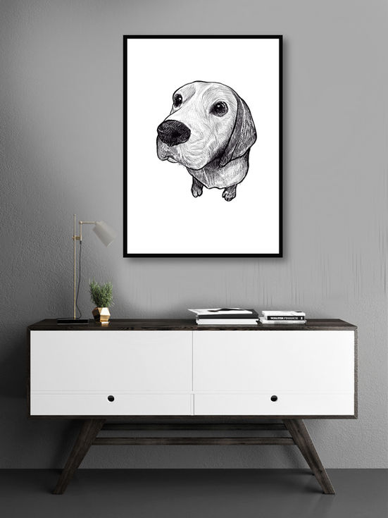 Arte á traço entregue em papel glossy 230g com moldura e vidro no tamanho A3 (42 x 21,9 cms).